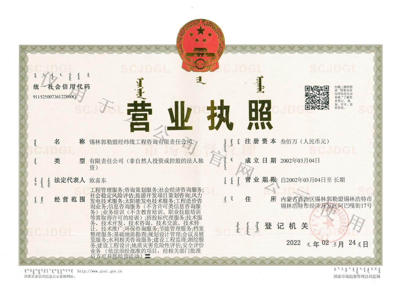 錫林郭勒盟經(jīng)緯線工程咨詢有限責(zé)任公司成立于2002年03月04日,注冊資本300萬元,原隸屬于錫林郭勒盟發(fā)展和改革委員會出資的國有獨資企業(yè),于2021年7月正式劃轉(zhuǎn)至錫林郭勒盟城鄉(xiāng)投資集團。公司具備工程咨詢乙級資信,為內(nèi)蒙古自治區(qū)工程協(xié)會、內(nèi)蒙古招標(biāo)采購協(xié)會常務(wù)理事單位。